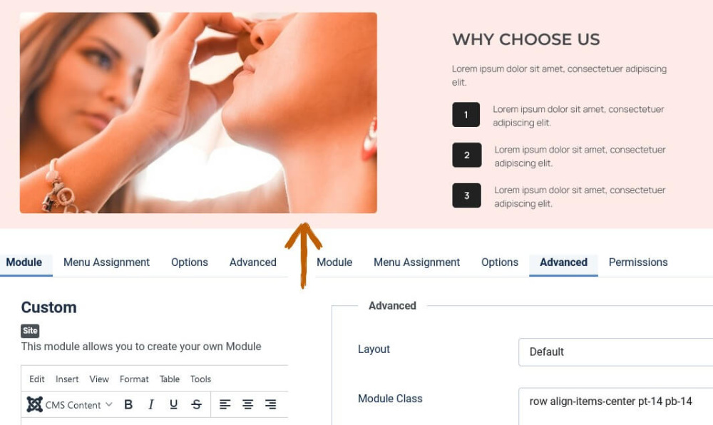 K tomuto modulu si můžete nahrát background image s efektem parallax na záložce "options"